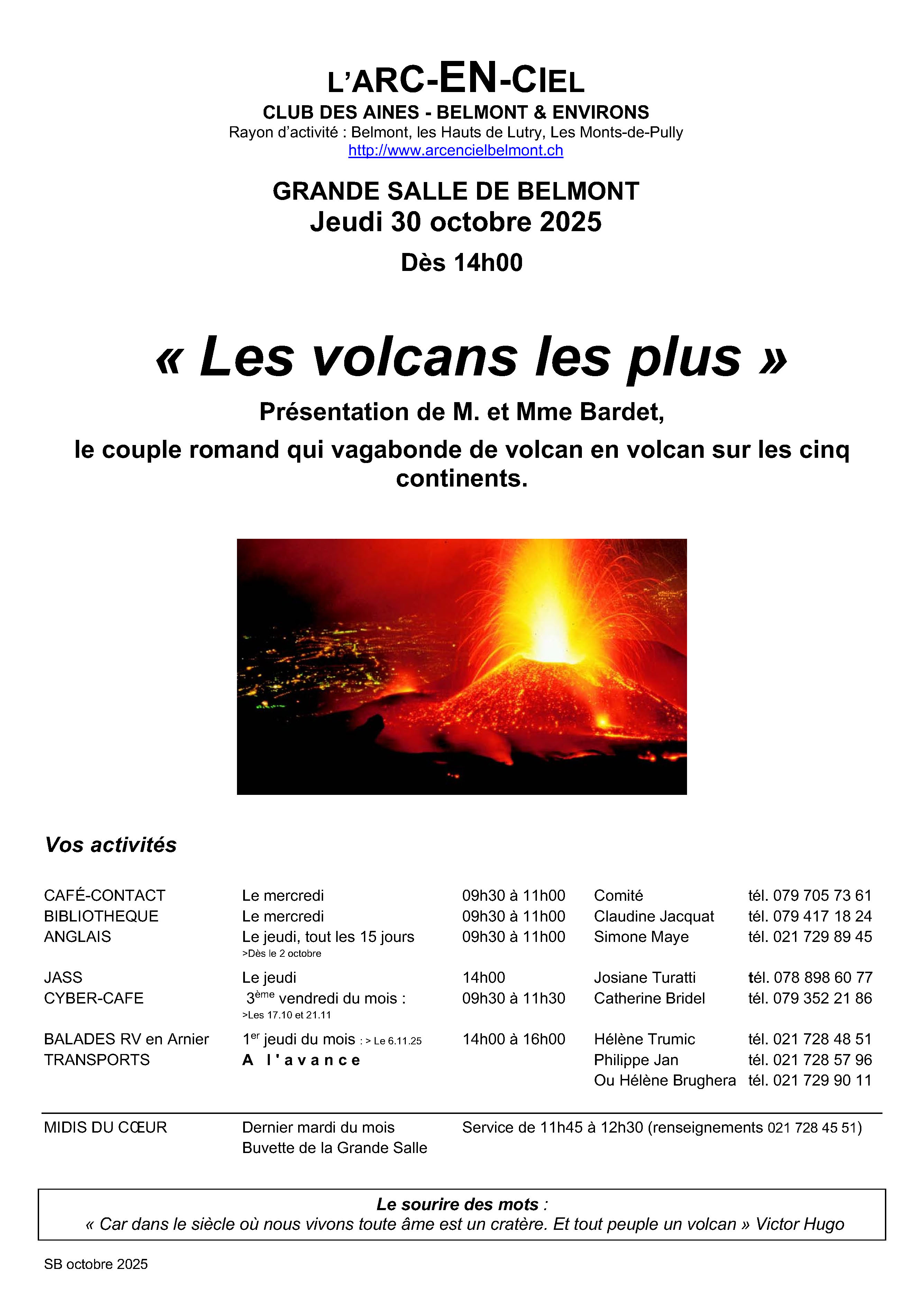 Présidente : Laurette Favre - tél. 079 705 73 61/courriel : jaqueline.laurette@gmail.com